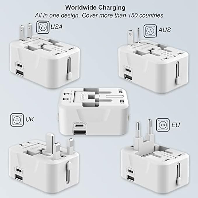 • 【WORLDWIDE UNIVERSAL ADAPTER】-This International Power Adapter with 4 international plug adapters. Cover more than 150 Countries with US/EU/UK/AUS plugs, The adapter is NOT a voltage converter, please make sure that the devices that you will be using with our travel adapter all have dual or variable-voltage capabilities.