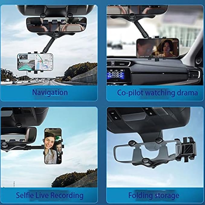360°Rotatable and Retractable Car Phone Holder - Rear View Mirror Phone Holder, Car Phone Holder Mount, Easy to Install and Remove, for All Mobile Phones and All Car