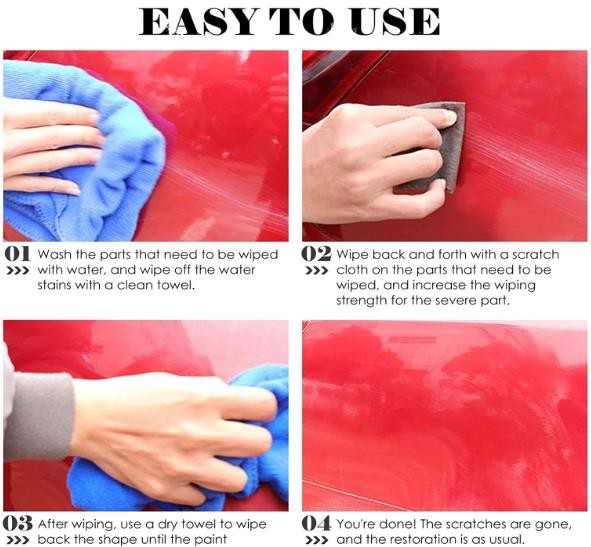 - 【Efficient Car scratch cloth】The Car scratch cloth is very efficient for repairing some small scratches of cars. No need to require paint cleaners or polishes, just use it to wipe the surface of car to remove small scratches. When dealing with small scratches, it is efficient.