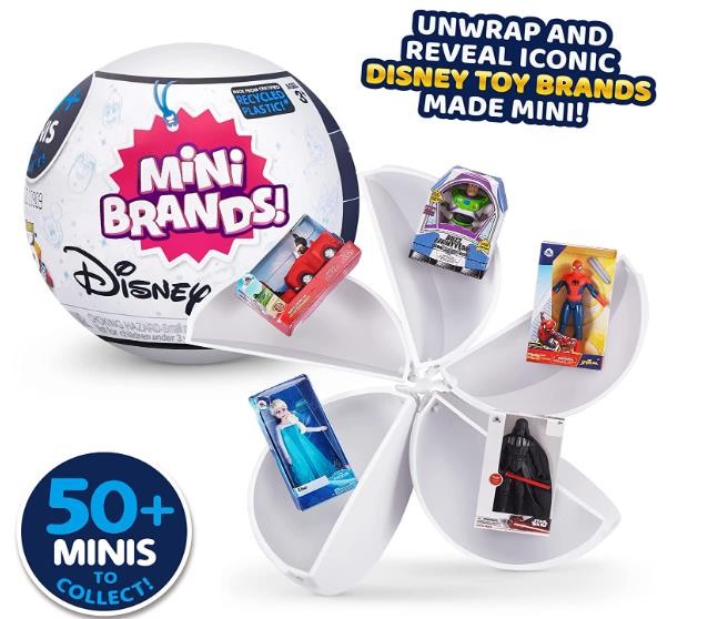 Introducing new REAL miniature Disney Toy Store collectables There are over 70 miniatures of your favourite Disney brands to collect from Marvel, Pixar, Lucasfilm, Mickey & Friends and Disney Princesses. Find minis of your favourite characters like Spiderman, Darth Vader, Elsa from Frozen, Mickey Mouse and friends and Buzz Lightyear. Collect them all including special accessories to recreate your own Disney store! What 5 surprises will you unbox?