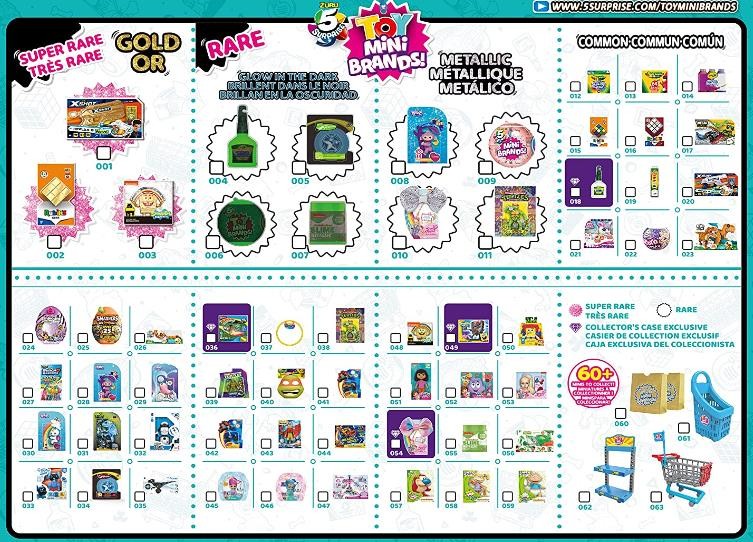 Unwrap peel and reveal real miniature collectibles with 5 Surprise Mini brands! What 5 surprises will you unbox? There are over 70 miniatures of your favorite brands to collect including rare metallic and glow in the dark minis and Super rare golden minis too! Collect them all to create your own mini shopping world!