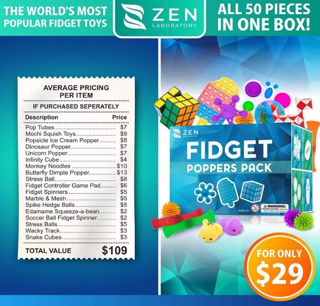 Are you children obsessed with fidgets? Are they asking you for marble and mesh, mochis, poppers, and sensory fidgets? Are you thinking, "I wish there was a box that had all of these fidget toys in one place!"? If this is you, look no further! Zen introduces the Fidget Toy Pack ends all searches!