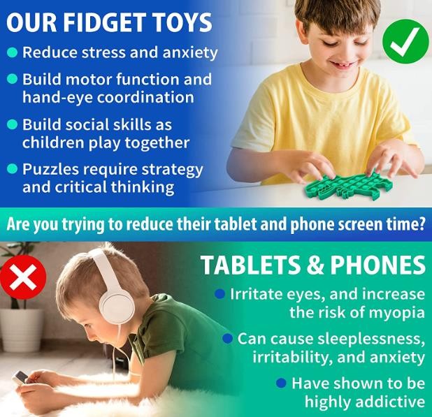 - Sensory Toys for Kids - Used in therapy sessions and to calm down the minds of autistic children, kids with autism and adhd, and for stressful anxiety induced situations when these mini small toys can occupy thoughts while keeping hands busy. Parents and school teachers are encouraged to keep figit poppers in the car when traveling and in the classroom either as must have supplies or for rewards prizes to encourage competition. Don't worry about noise since these bubble popping figets are quiet