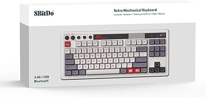 8Bitdo Retro Mechanical Keyboard, Bluetooth/2.4G/USB-C Hot Swappable Gaming Keyboard with 87 Keys, Dual Super Programmable Buttons for Windows and Android - N Edition