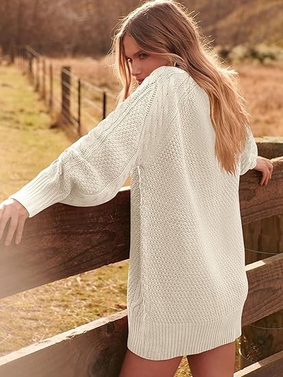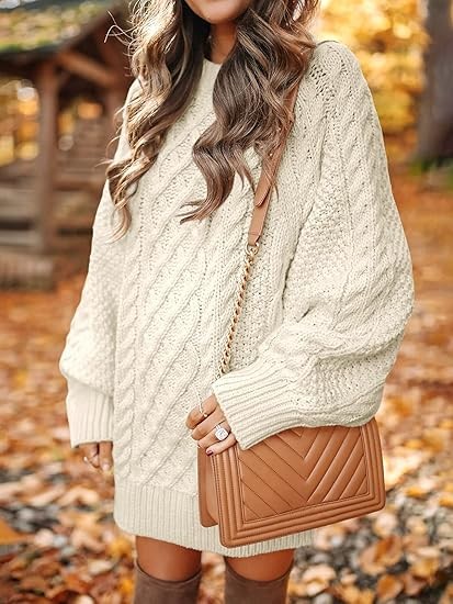• Design - Cable knit sweater dress featuring an oversized, loose fit that flatters any figure. The classic crew neck and ribbed cuffs and hem will give you a timeless sweater dress look. Perfect for any occasion, daily life/dates/dining/leisure/office/outing.