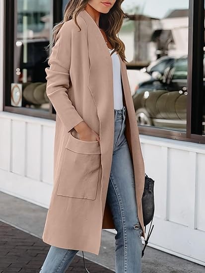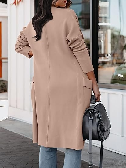 Features - Draped open front , pockets , long sleeve , thigh length cardigan , knitted , relaxed fit.This cardi is such a perfect choice for cozy days! Great for casual, daily, school, office, going out, holiday, vacation, street wear.