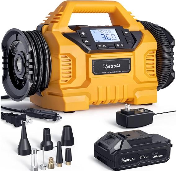 A good portable compressor. The reason that I like this is because it has 3 power options: electric, 12v and a battery.