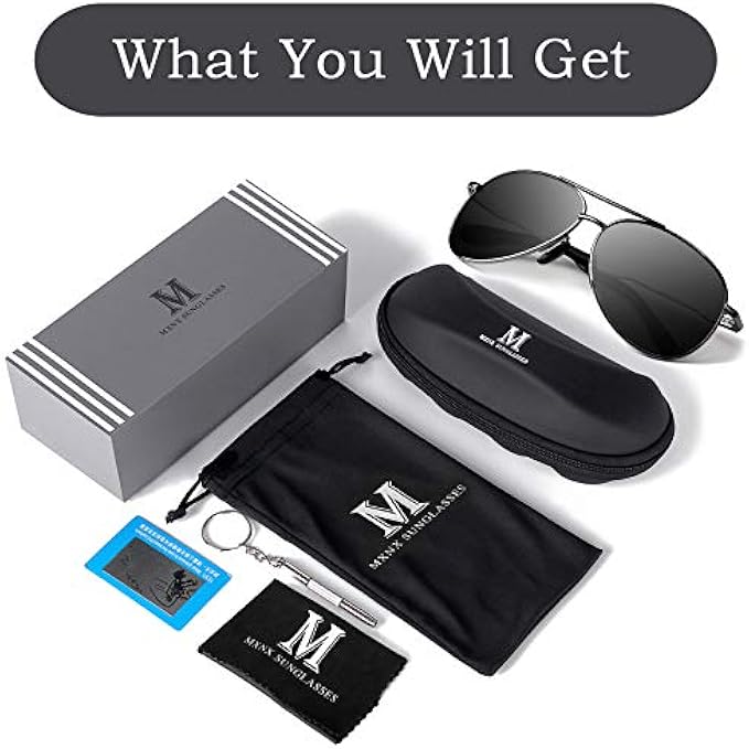 30 DAY MONEY BACK GUARANTEE - 100% satisfaction guaranteed,First choice as a gift.Unisex Aviator style.Good for driving & All outdoor activities for all day;limited time special pricing and elegant glasses accessories for free,get MXNX's sunglasses now.