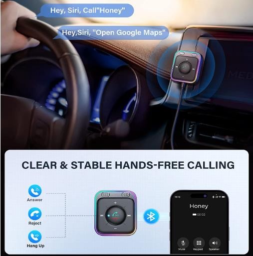 3、Due to the different operating systems of different phones, the volume of the receiver may not be synchronized with the volume of the phone/car audio. Please manually volume up the mobile phone, the receiver, and the car audio respectively.