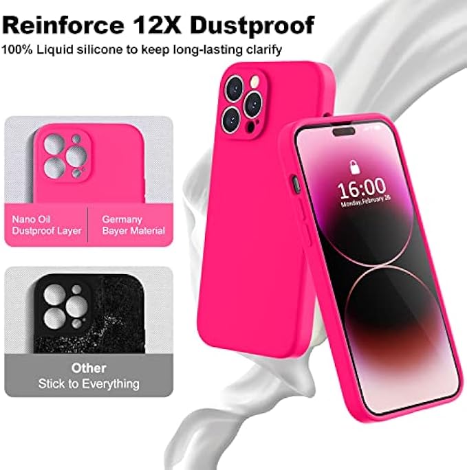 BossKiss Compatible with iPhone 14 Pro Case 6.1 inch, Premium Liquid Silicone Case [Velvety Touch] [2 Pcs 9H Tempered Glass Screen Protector], Camera All-Round Protection Shockproof Case, Hot Pink