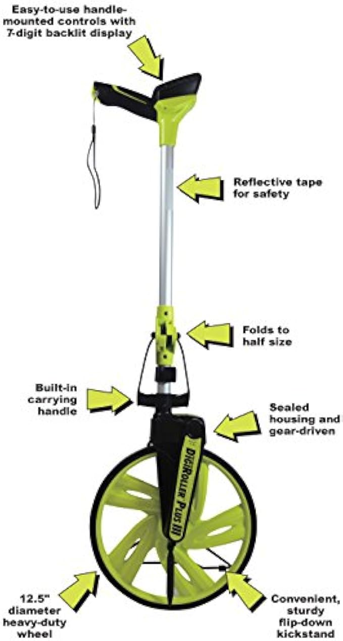 Calculated Industries #6575 DigiRoller Plus III 12.5 Inch Estimators Electronic Distance Measuring Wheel with Large Backlit Digital Display; Measure in Feet, Inches, Meters, Yards; FREE Carrying Pack