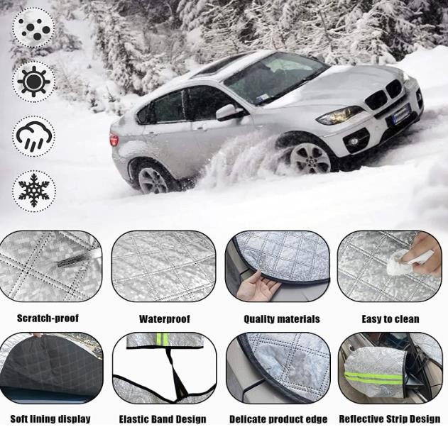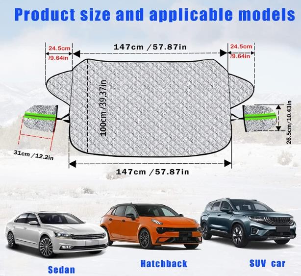 2.With our easy-to-install car windshield covers, you don't have to scrape ice, snow, dust, and leaves off your windshield on cold mornings in winter. This perfect front windshield cover helps you tackle all the seasons. trouble.