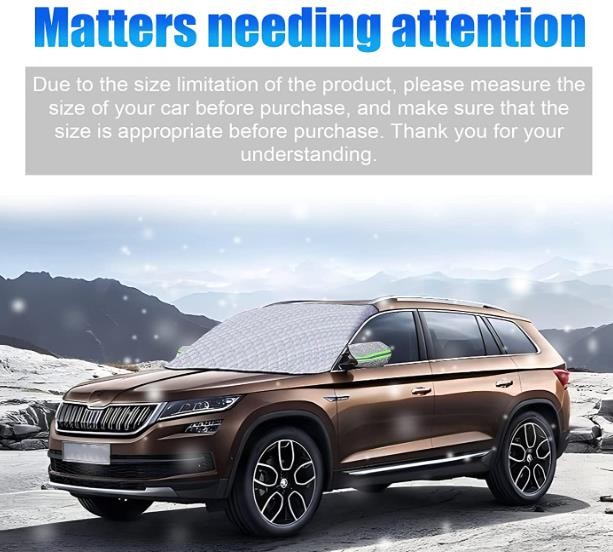 4.This windshield cover is perfect for cars, small trucks, sedans and SUVs. Protects and covers the essential visible area of the front windshield. Installation and removal are easy and convenient in seconds.