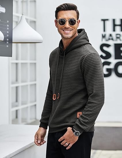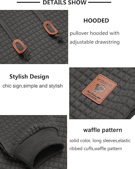 • 【Stylish Design】:Mens hoodie sweatshirt designed in waffle pattern, solid color, long sleeves,elastic ribbed cuffs,pullover hooded with adjustable drawstring, simple and stylish.