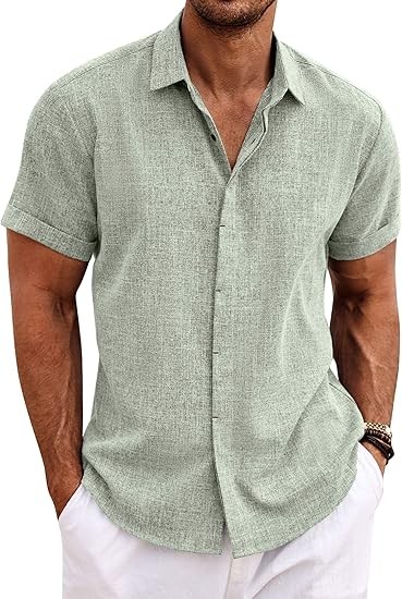 • COOFANDY LINEN SHIRT --- Mens Casual Button Down shirt is made of high quality cotton linen fabric. Feature with Breathable, Lightweight, Skin-friendly, which can resistant shrink, provide you feeling cool and comfotable all day