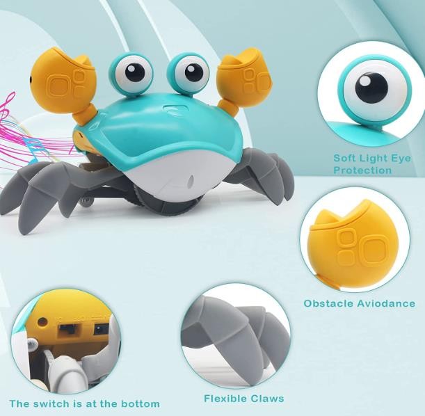 - 【Musical Crab Toy】 Super value for crawling crab baby toy &sensor obstacles avoidance function,when the crawling crab baby toy encounters an obstacle during moving, the crawling toys will move in the opposite direction in time. The light and music makes the walking crab baby toy very attractive to kids.Note: Do not use this toy in water or humid environments.