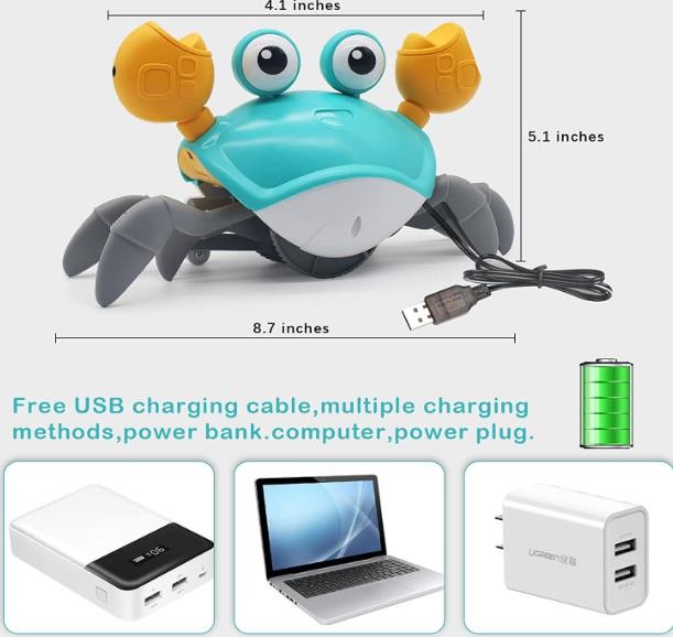 - 【Child Development】This crawling crab baby toy is a fun musical toy for boys and girls. Children will love interacting with the crawling toy ,when the crab toy is moves around with the light and music. The music crab toy Can help Children's development by stimulating body movement and co-ordination.