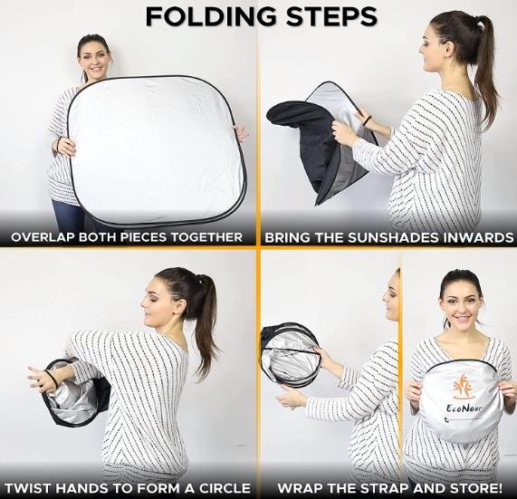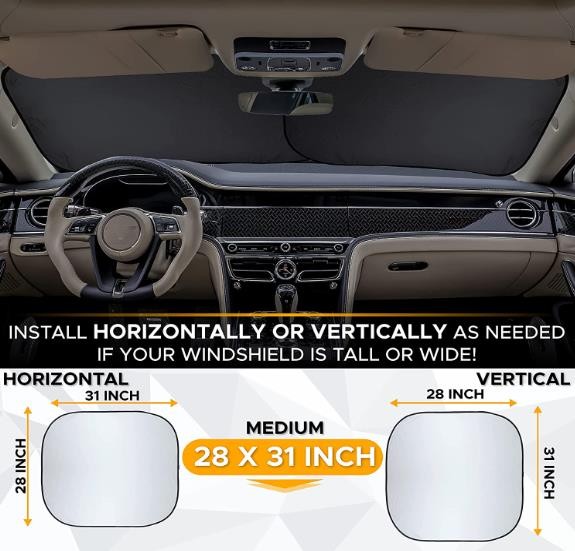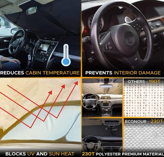 EcoNour Foldable Windshield Sunshade deflects the temperature and other harmful sun rays that can cause serious damage to your car's interior. By diverting all the dangerous sun rays such as UVA and UVB with ease, your car's interior temperature will remain at an optimum level by up to 90F!