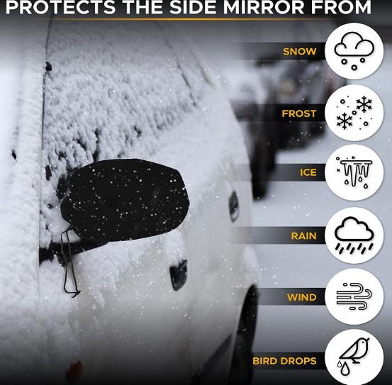 EcoNour Car Side View Mirror Cover keeps your mirror free from scratching and scrubbing away the ice and frost. Keeps the mirror perfectly visible and also protects your side view mirror. Our snow covers protect your driver and passenger mirrors from scratches, dust, ice, snow, birds droppings, etc.