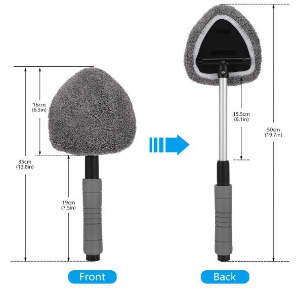 This is a clever invention that enables easy reach from drivers side to passenger windshield coverage. It telescopes out much like my snow brush. It comes with 4 covers and a handy water spritzer. I am finally able to clean the interior windshield without leaving my seat or struggling over the dash. Brilliant!