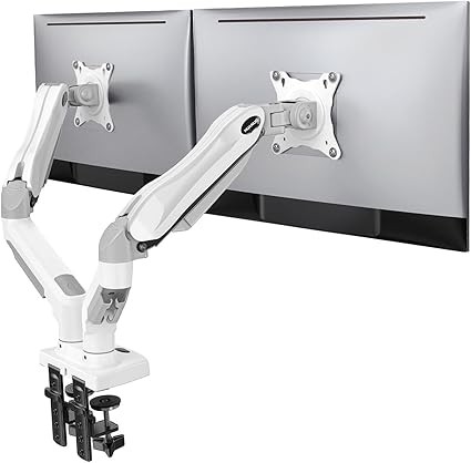 HUANUO Dual Monitor Stand - Full Adjustable Monitor Desk Mount Swivel Vesa Bracket with C Clamp, Grommet Mounting Base for 13 to 32 Inch Computer Screens - Each Arm Holds 4.4 to 19.8lbs - Whtie
