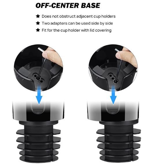 • 【Offset Long Base】 Joytutus large cup holder adapter for car adopts the OFF-SET long base design, which perfectly fits for more different types of original car cup holders. It is compatible with the gear shifter, center console lid, car dash and allows two cup holders to be placed side by side.