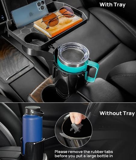• 【Latest Upgraded Version】Different from the traditional cup holder expander, our latest multifunctional car cup holder not only could be used as a temporary table for having meal in the car, also could be used for organizing little gadgets. With the new features, organizing your center console in tidiness, no embarrassing situation any more.