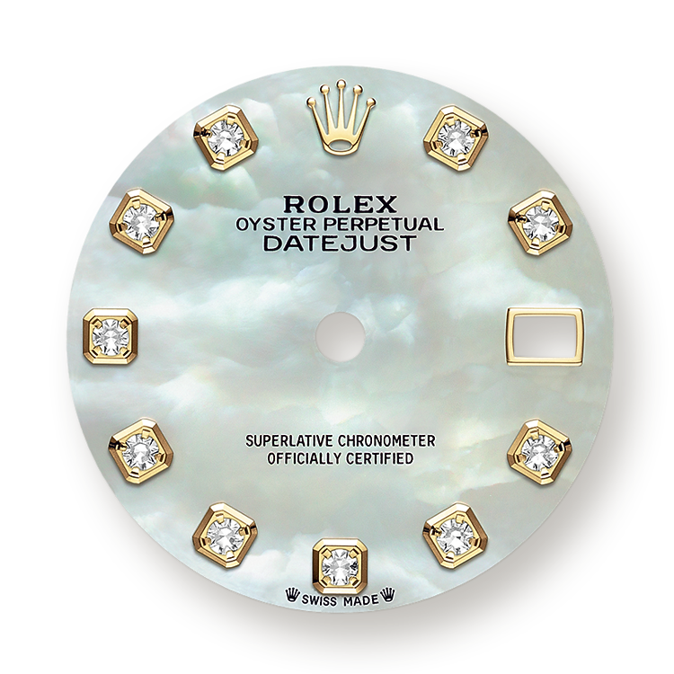 At Rolex, mother-of-pearl is never artificially coloured. Instead, particular know-how and skill are devoted to simply highlighting its natural beauty and preserving the original hues. As all mother-of-pearl dials are unique pieces, an identical dial will never be found on another wrist.