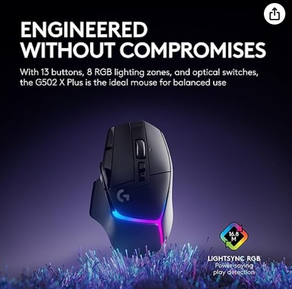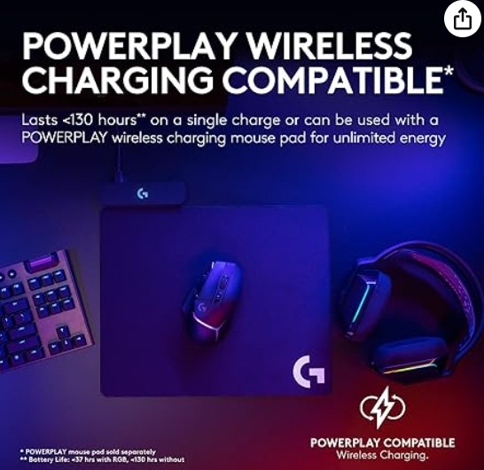 • POWERPLAY compatible: G502 X PLUS wireless PC gaming mouse stays charged, at rest and at play, with our unique wireless charging solution (sold separately)