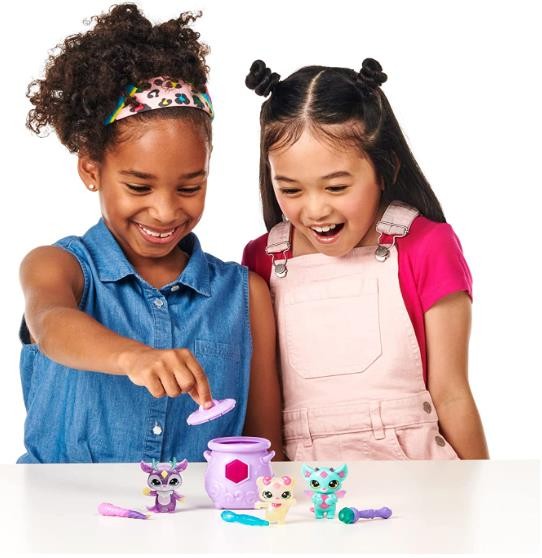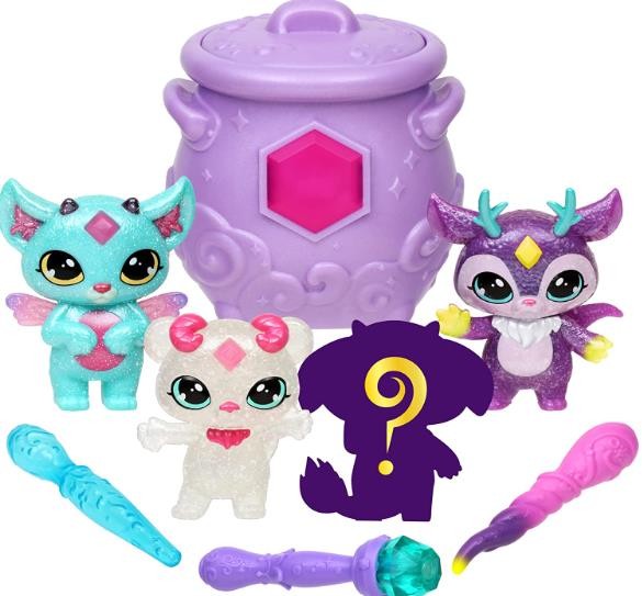 "Magicus Mixus!" Get ready to make real magic and discover the world of Magic Mixies Mixlings, a cute new breed of Magic Mixies for you to conjure up! The Sparkle Magic Mega Pack includes 4 Mixlings with an exclusive sparkly finish plus one mystery sparkly Mixling in the included Cauldron. Who will you find inside? Each Mixling in the Sparkle Magic Mega Pack has a different magical power that is revealed with the 3 included magic wands. Harlie is a Flier - tap his Gem with your Wand and he will reveal his beautiful wings. Gexi is a Spellster - use your wand to see her light up the night as she makes herself bright! And Mava is a Vanisher - this Mixling has a disappearing spell and can become invisible! Who else will you find inside the Cauldron and what magical team will they belong to? To find out, first, rub the Cauldon's gem to reveal if the Mixling inside is Common, Rare or Ultra-Rare! Then, say the magic words 'Magicus Mixus' and open the Cauldron to reveal your Mixling. Mischievous and magical, Mixlings are so much fun as you cast spells and unlock different ways to play. You can repeat the magic Cauldron Gem reveal again and again and at the end of the day you can use the Magic Cauldron to store your Mixling and other trinkets. With over 40 little magic toy Mixlings to create and collect throughout Series 1, there are so many magical moments to discover with Mixlings!