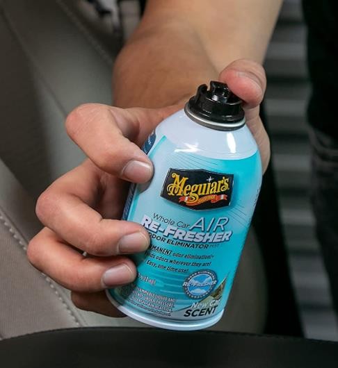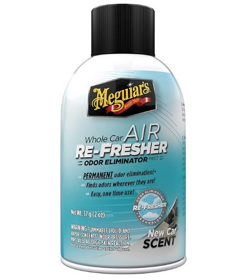 If your car doesn’t smell quite as fresh as it used to Meguiar’s has a great solution that’s permanent, quick and easy. Meguiar’s Whole Car Air Re-Fresher Odor Eliminator Mist New Car Scent penetrates the complete interior of your car, truck or SUV eliminating unwanted odors permanently*. This one-time use air freshener flows through the ventilation system, across the headliner and in-between all other hard to reach areas, eliminating odors and leaving a fresh, clean scent in its place. Find odors wherever they are, permanently remove them and freshen your interior with a pleasant New Car Scent that lasts for weeks. *Meguiar’s Re-Fresher technology permanently removes existing bad odors through chemical bonding on a molecular level.