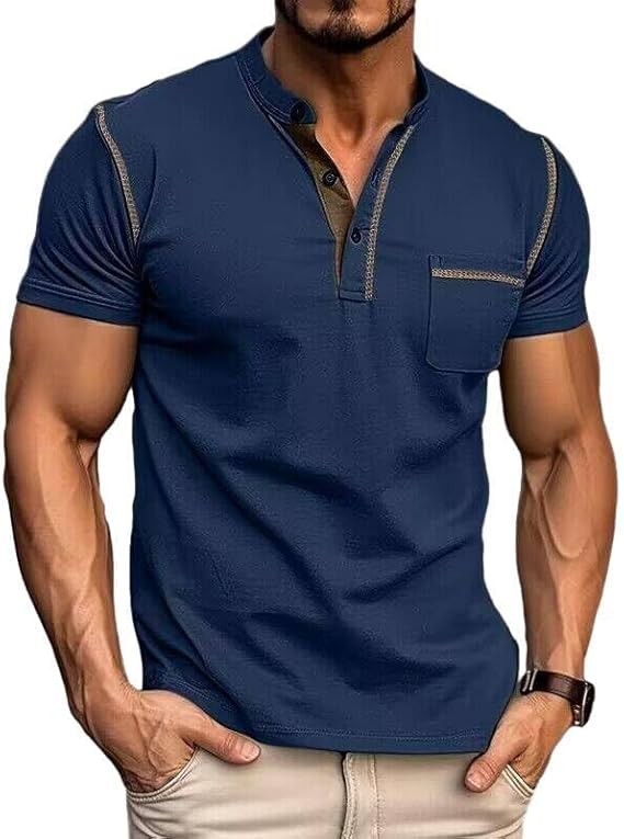 Men's Fashion Henley Shirt Classic Short/Long Sleeve Lightweight Button Cotton T-Shirt Casual Top