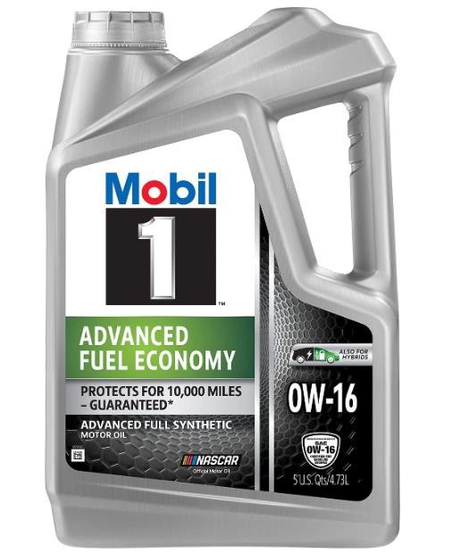 Mobil 1 Advanced Fuel Economy full synthetic 0W-16 motor oil helps to improve fuel economy* and extend engine life for vehicles of all ages. Mobil 1 Advanced Fuel Economy is designed to deliver outstanding engine protection from the five factors that can damage engines over time and protect critical engine parts for up to 10,000 miles between oil changes**. Its uniform synthetic oil molecules reduce friction, helping to prevent deposits and sludge buildup. Providing outstanding engine wear protection, this technologically advanced formulation offers excellent internal engine heat protection (up to 500 degrees Fahrenheit), and low-temperature protection (to -40 degrees Fahrenheit), supporting quick cold-weather starting and ultra-fast protection. Mobil 1 Advanced Fuel Economy meets ILSAC GF-6 standards to help provide low-speed pre-ignition (LSPI) and timing chain wear protection while keeping your engine clean and helping to improve your fuel economy. Available in 1-qt. and 5-qt. bottles, Mobil 1 Advanced Fuel Economy full synthetic motor oil 0W-16 also helps control oxidation to prevent oil breakdown and is recommended by ExxonMobil for all types of modern vehicles, including high-performance turbo-charged, and supercharged gasoline and diesel multi-valve fuel-injected engines found in passenger cars, SUVs, light vans, and light trucks. Mobil 1 is America’s leading synthetic motor oil brand at retail***, recommended by car builders and experienced mechanics, and is the Official Motor Oil of NASCAR®. (*Potential fuel economy improvement obtained by switching from higher-viscosity oils to a lower-viscosity grade. Actual savings are dependent upon vehicle/engine type, outside temperature, driving conditions, and your current engine oil viscosity. **Protects for up to 10,000 miles or 1 year, whichever comes first. To learn more about the Mobil 1 Limited Warranty, visit Mobil.US. ***Source: The NPD Group/ Retail Tracking Service/ Dollar Sales/ PCMO Full Synthetic/ 52 weeks ending May 29, 2021)