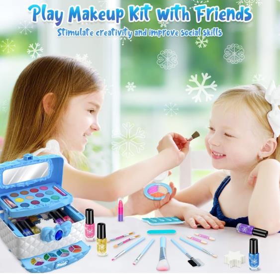 Mozok Kids Makeup Kit for Girl, Frozen Theme Real Play Make Up Toys for 3 4 5 6 7 8 9 10 11 12 Year Old Girls, Washable Pretend Dress Up Beauty Set Cosmetic Case, for Little Girls