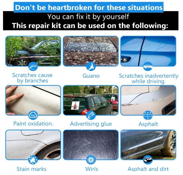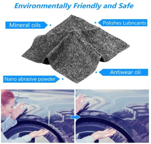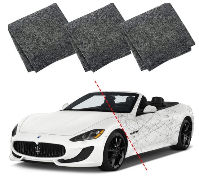 Our nano repair cloth can repair scratches of shallow levels, such as scratch Cause by branches, Guano, Sludge, paint oxidation, Advertising Glue, Asphalt and auto scratch repair cloth with the effect of clean polishing and restoring scratches.