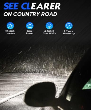 Extremely Bright light outshines the rest. 600% brighter compared to halogen bulbs, 5000 lux light distribution grants wider vision for drivers.