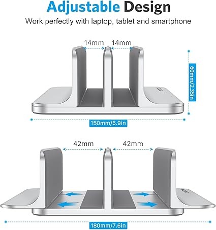 • Protective Mat: Non-toxic and non-slip silicone mats cover the laptop slots to avoid scratches on your devices; non-slip silicone pads pads on the base ensure stability and security.