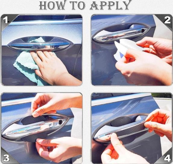 • 【Car Door Handle Scratch Protector】These door handle protectors for vehicles protect the door handles from scratches caused by many factors. Stickers are self-adhesive and strong enough to stay on your car for a long time. They can stay firmly in positions and will not leave any residue when tear off.
