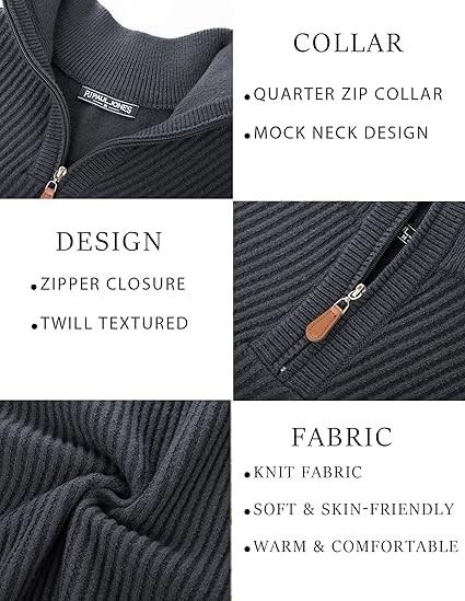 • Premium Material: Men's quarter zip pullover is made of soft and comfortable knitting fabric, well elastic, skin-friendly and durable, keeps you warm and cozy even in cold winter