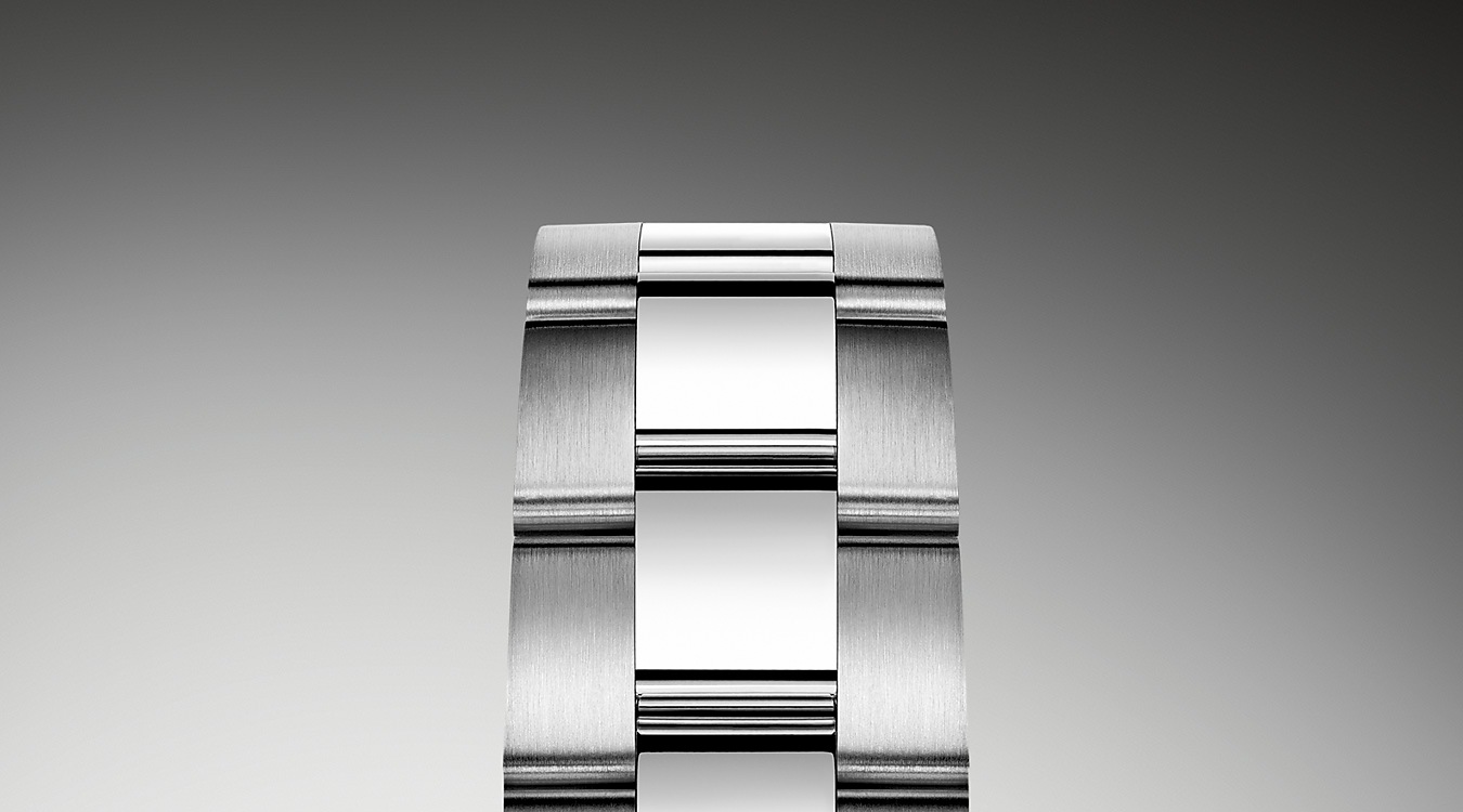 The Oyster bracelet is a perfect alchemy of form and function, aesthetics and technology, designed to be both robust and comfortable. It is equipped with an Oysterclasp and the Easylink comfort extension link, also exclusive to Rolex. This ingenious system allows the wearer to increase the bracelet length by approximately 5 mm, providing additional comfort in any circumstance.