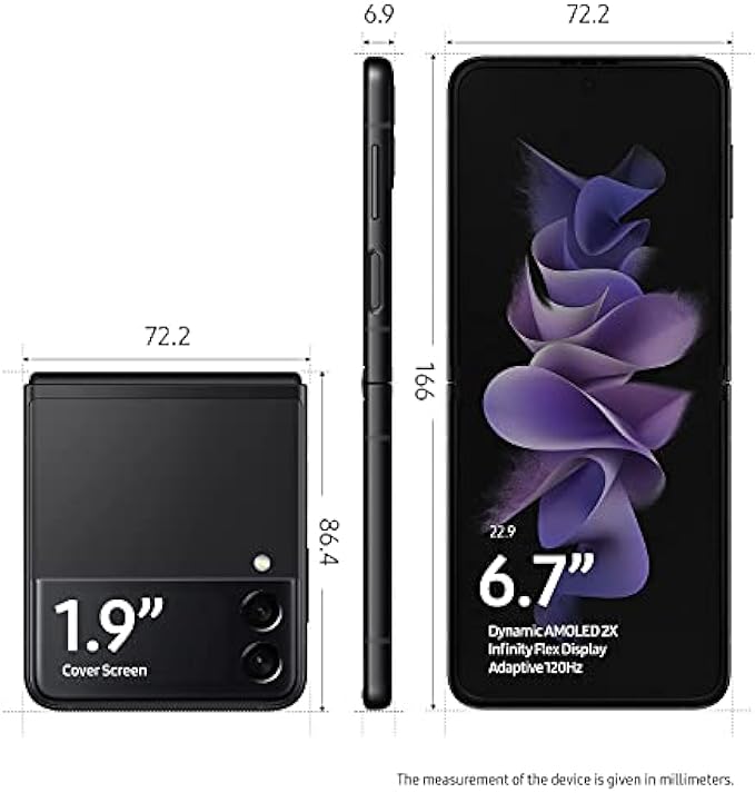 SAMSUNG Galaxy Z Flip 3 5G Factory Unlocked Android Cell Phone US Version Smartphone Flex Mode Intuitive Camera Compact 128GB Storage US Warranty, Phantom Black (Renewed)