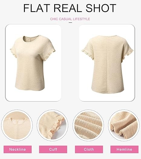 Feature: Women Summer Shirts, Short Sleeve Tops for Women, Crewneck Tops for Women, Work Blouses for Women, solid color, fashion and trendy, add beauty to your wardrobe
