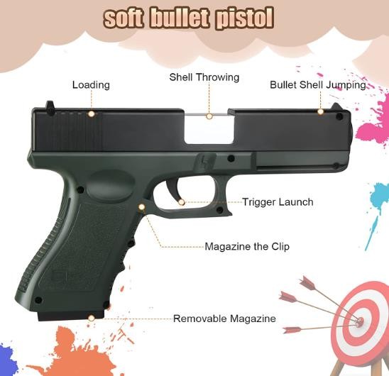 Safe and Soft Bullets: This toy gun loaded with soft foam bullets that are made of High-quality EVA material, not cause harm to the human body and children can shoot it safely.