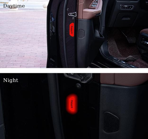 SINGARO 4PCS Car Door Open Reflective Attention Sticker, Driving Reminder Sticker, Night Visibility, Car Decorative Accessories, Universal for Trucks, SUVs, Bicycles and Vans (Red)