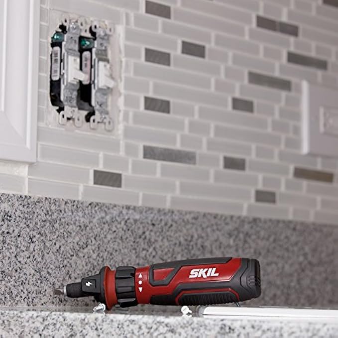 SKIL Rechargeable 4V Cordless Screwdriver with Circuit Sensor Technology, Includes 9pcs Bit, 1pc Bit Holder, USB Charging Cable - SD561201 , Red