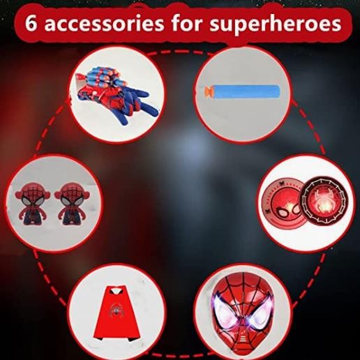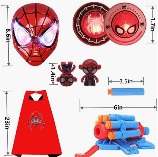 The best part of childhood is being able to play with dress-up toys and costumes, and this superhero toy includes a variety of cool gear, including: superhero costumes LED masks, spider dolls, superhero badges, web-shooters, and the fun of playing hero with your friends while wearing superhero toys!