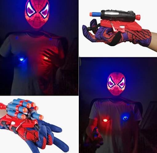 • Easy to use: The superhero cloak is made of comfortable wearables. The LED mask is very suitable for wearing at night. The superhero badge gently presses the shining light, and the web-shooter shooter's launchdistance is 30 feet. Two dolls will never fall, with these feelings like a spider.