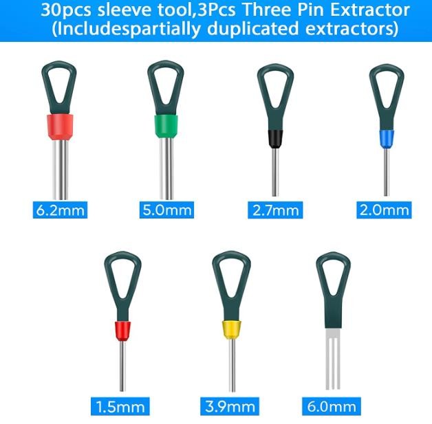 Kikerike Pin Extractor Release Tool Set is designed to take out auto wire terminals without damage, this pin removal tool has different sizes that fits most of the connector terminal removal.