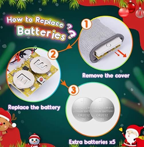 Comes with 5 spare replaceable batteries pre-installed and replaceable batteries. We also include extra batteries which can be save for later. LED Gloves are not waterproof.