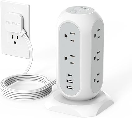 Space Saving Design: 4-side compact design tower power strip takes up little space on your desk, cleans various cords and make your desktop organized; With 4 rubber feet at the bottom, efficiently keeps this 6 ft extension cord from slipping and sliding
